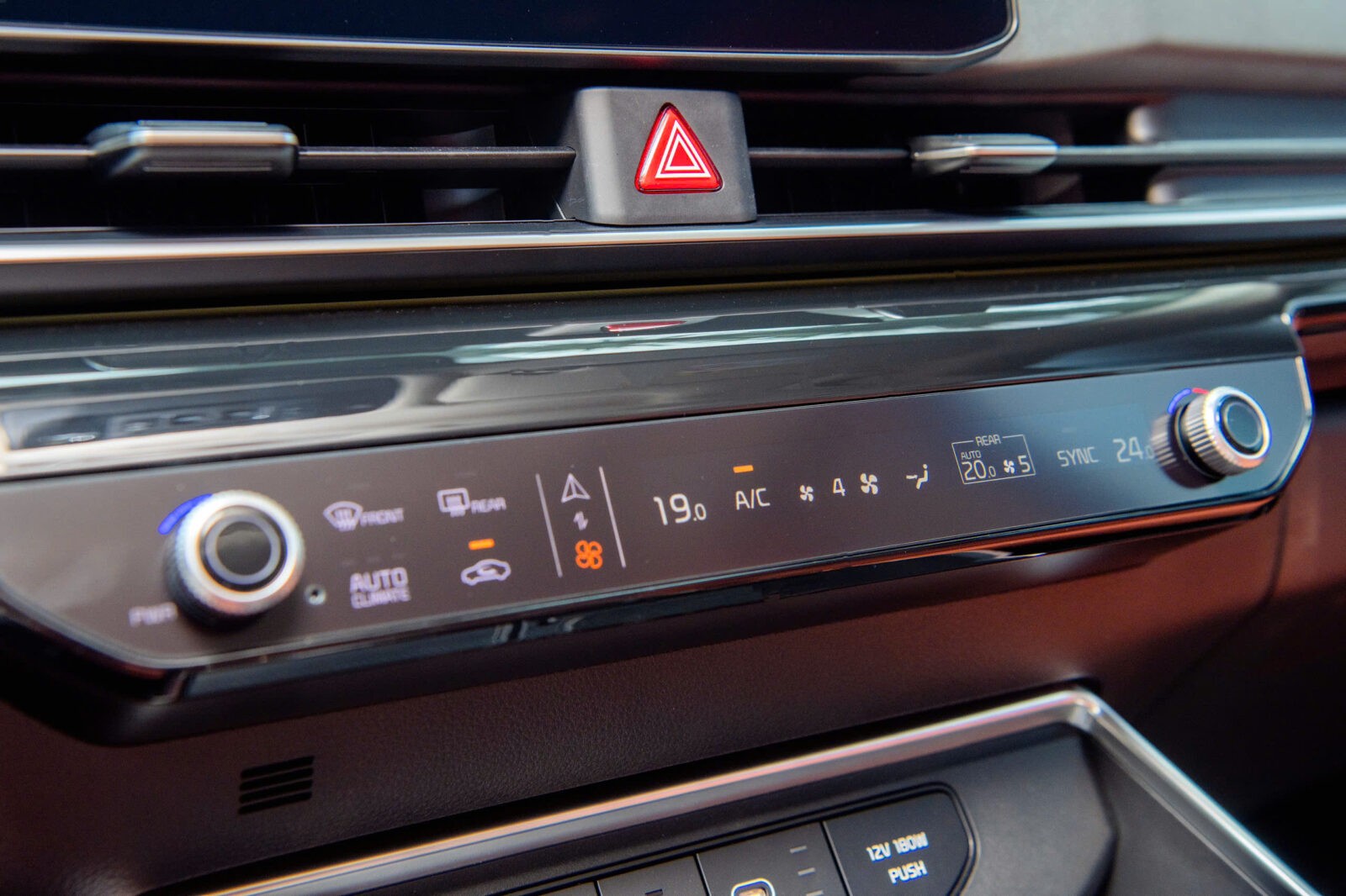 Kia New Carnival sở hữu hệ thống điều hòa tự động 3 vùng độc lập với bảng điều khiển bằng phím cảm ứng hiện đại thay vì phím cơ như phiên bản hiện hữu. Hàng ghế 2 có nút điều khiển điều hòa độc lập, bố trí thêm cửa gió hàng ghế 3 giúp luồng không khí có thể phân phối đa chiều đến từng vị trí ghế.