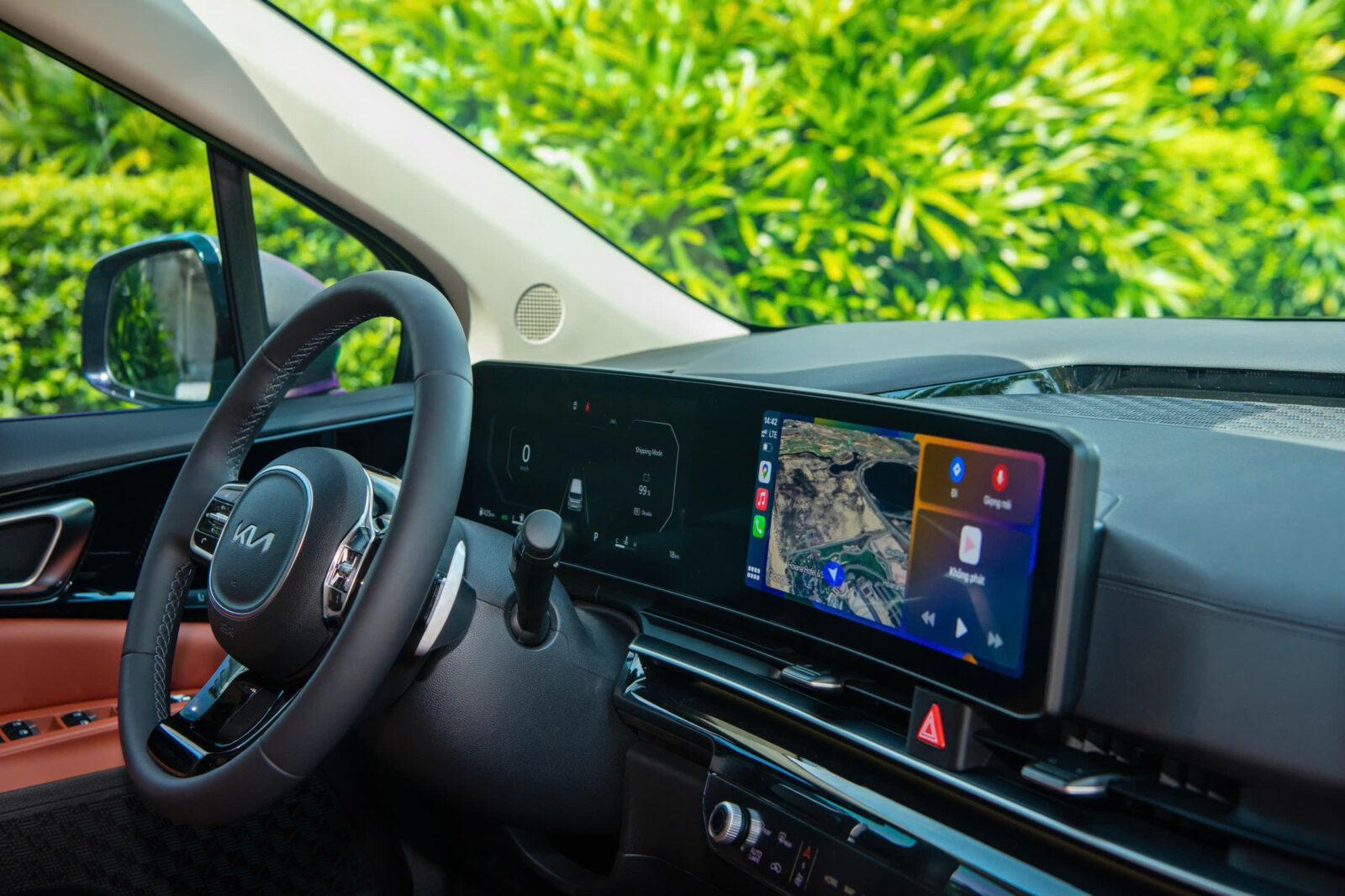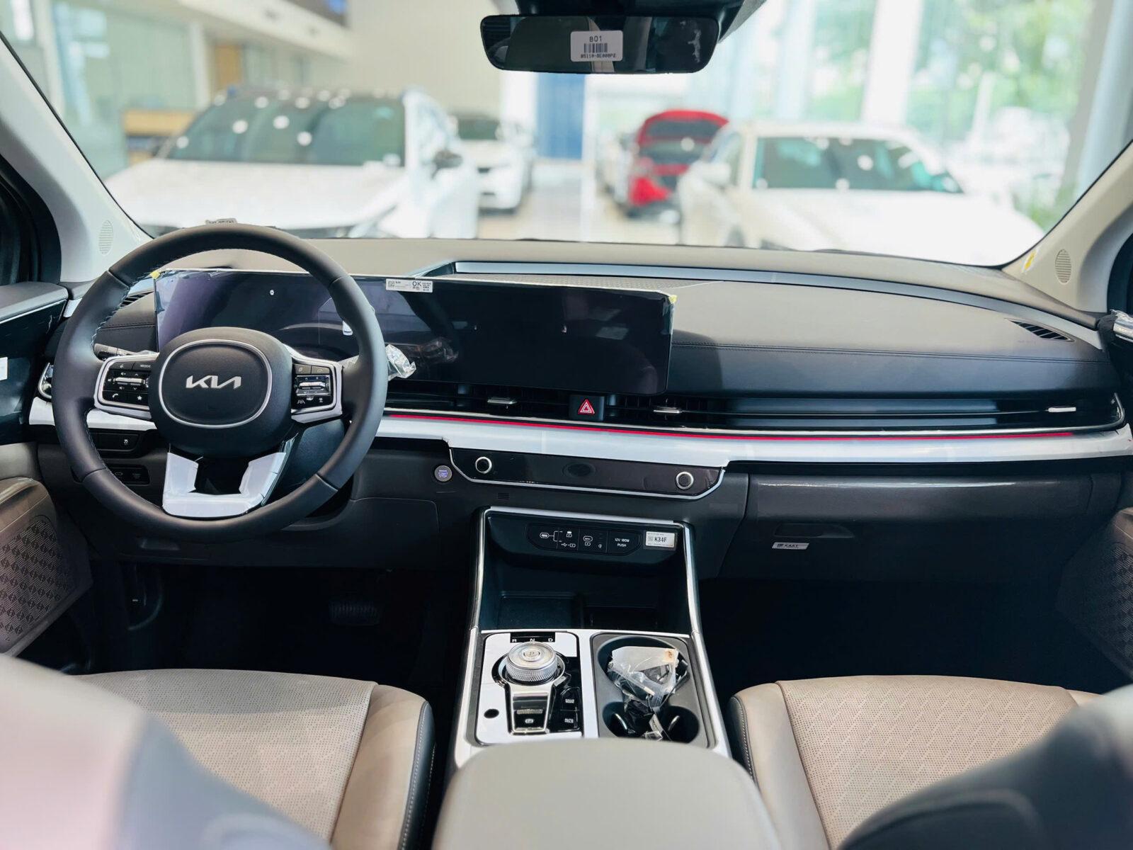 Không gian bên trong là sự kết hợp hài hòa giữa tính thẩm mỹ, cao cấp của vật liệu nội thất và các trang bị công nghệ, tiện nghi hiện đại hàng đầu. Thiết kế khoang lái mang đậm tính công nghệ tương lai với màn hình cong Panoramic kết hợp giữa cụm đồng hồ tốc độ dạng Full-LCD 12.3’’ và màn hình giải trí đa thông tin AVN 12.3’’ có độ phân giải full HD, kết nối Apple Carplay và Android Auto không dây; đồng thời có thể cài đặt và điều khiển các chức năng hệ thống trên xe thông qua màn hình cảm ứng AVN thay vì điều chỉnh bằng nút bấm trên vô lăng như mẫu xe tiền nhiệm.