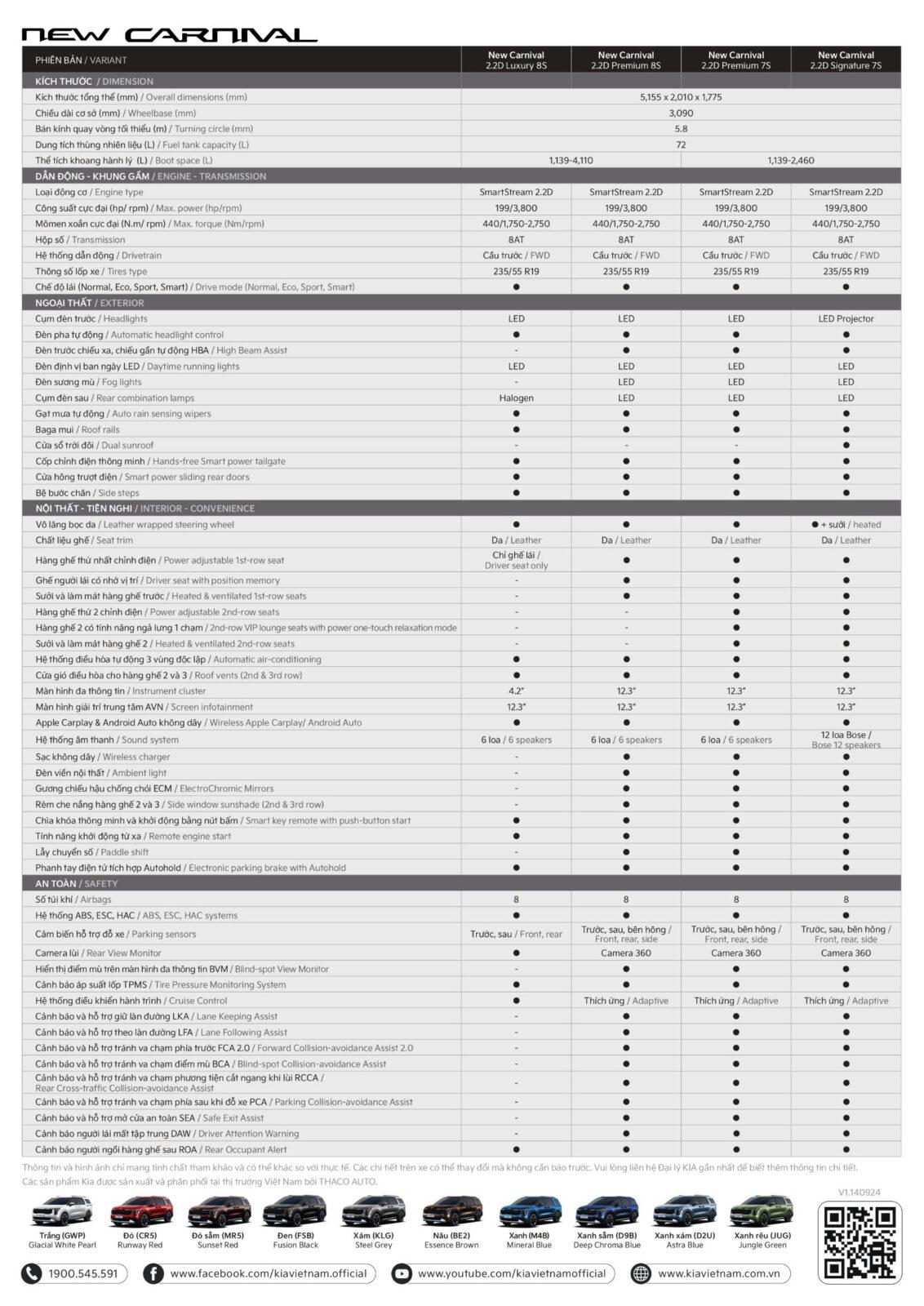 | New Carnival 2.2D Signature 7S: | 1,589 tỷ đ |