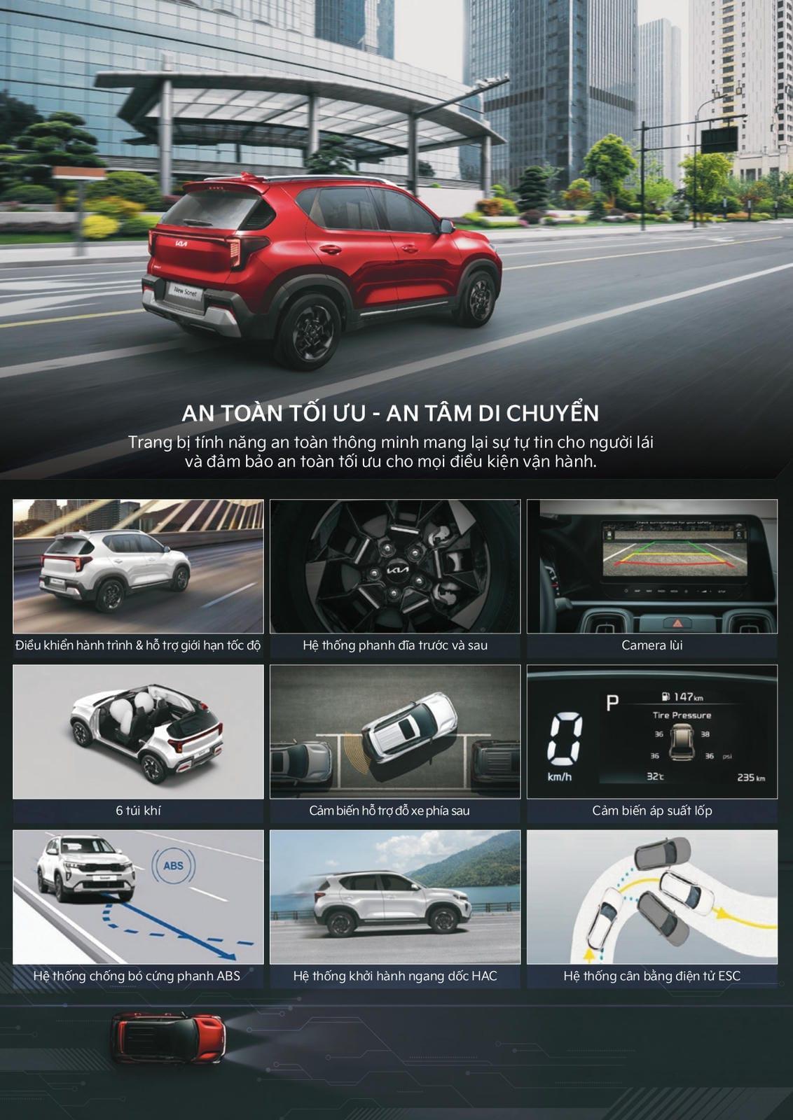 Kia Sonet 2024 không có nâng cấp tính năng an toàn nào mới so với những gì đã hiện diện trên bản tiền nhiệm. Cảm biến lùi, camera lùi, cân bằng điện tử, hỗ trợ khởi hành ngang dốc là trang bị tiêu chuẩn.
