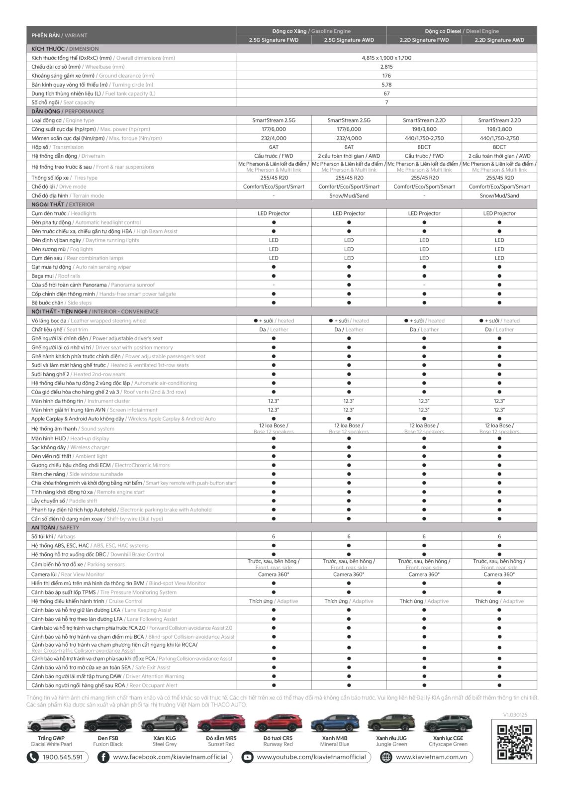 Kia Sorento 2025 chính thức ra mắt tại Việt Nam, bản facelift với thiết kế tinh chỉnh, loạt trang bị tiện nghi – an toàn nâng cấp. Duy nhất cấu hình Signature nhưng đầy đủ tùy chọn máy xăng & dầu, dẫn động FWD & AWD.